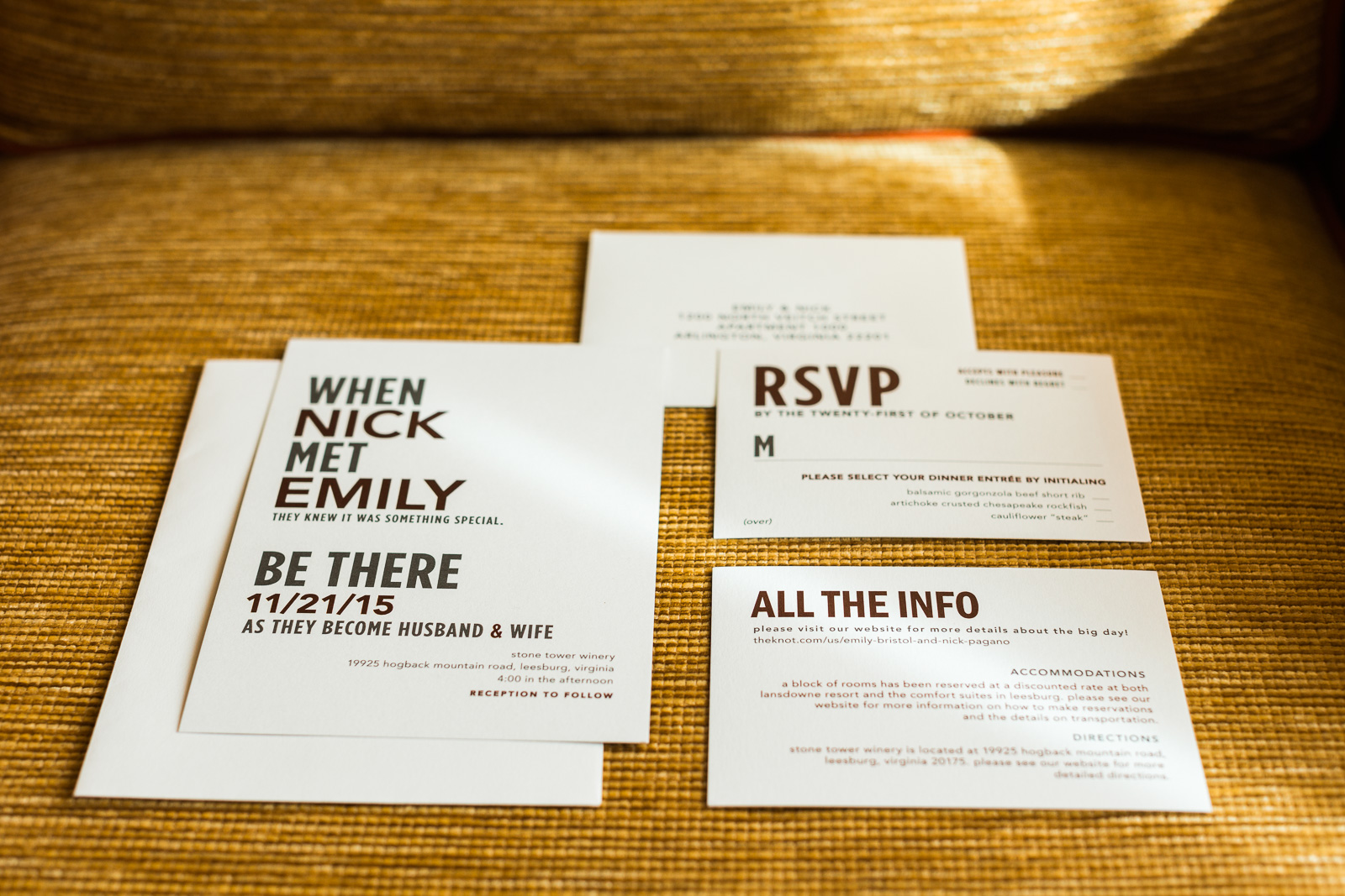 I’m convinced they’ve never met a stranger. Comfortable, elegant, and adorned in colors of wine, they were married at Stone Tower Winery in Leesburg, Va. The day could not have been more uniquely theirs, family played a big part of their ceremony with Emily’s brother as officiant, they cut their cake with a freakin’ sword, a bagpiper friend occasionally sprinkled the air with melody, and they exited in a blaze of sparklers. Certainly one for the books.